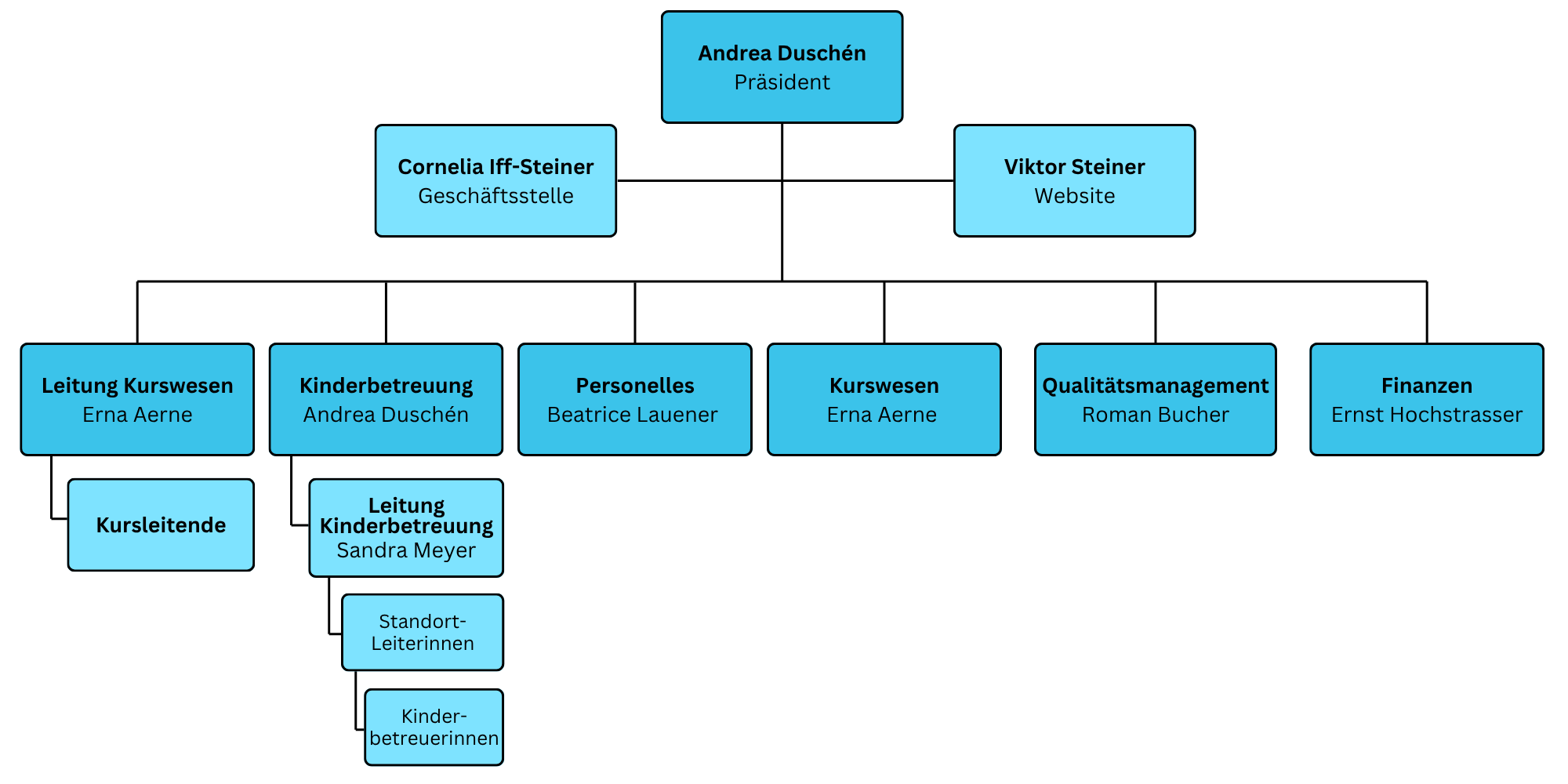 Organisatorischer Aufbau Vorstand Andrea Duschén (Präsident), andrea.duschen@lernen-im-freiamt.ch, 079 381 01 81 Beatrice Lauener (Personelles) Erna Aerne (Kurswesen) Roman Bucher (Qualitätsmanagement) Ernst Hochstrasser (Finanzen)
